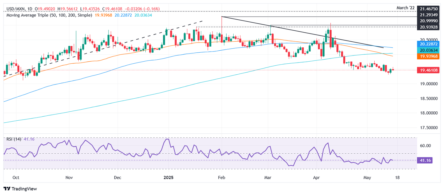 That said, the first support is the current year-to-date (YTD) low of 19.29 ahead of the 19.00 figure. On the other hand, if USD/MXN rises past 19.50, the next resistance would be the 20-day Simple Moving Average (SMA) at 19.92, ahead of the 20.00 figure.