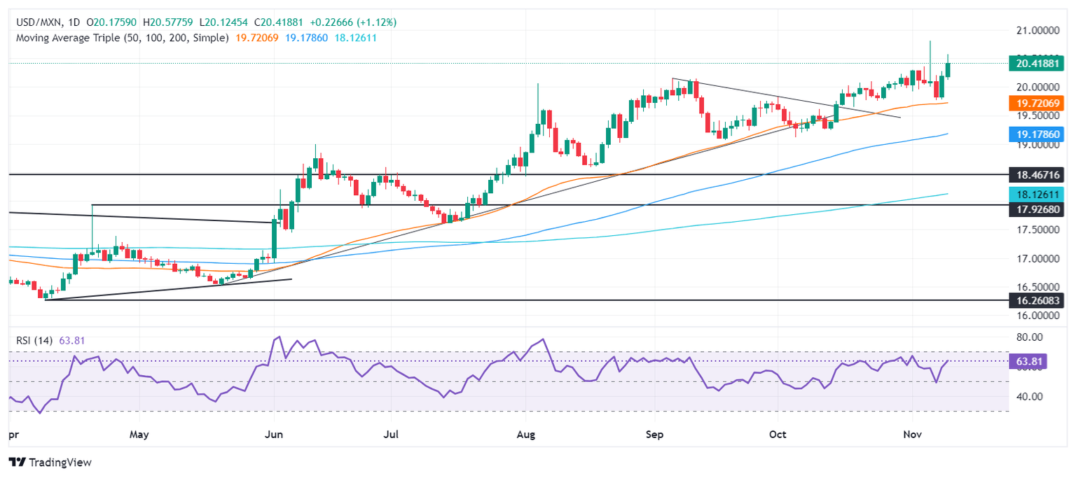 USD/MXN technical outlook: Mexican Peso tumbles again as USD/MXN rises above 20.00