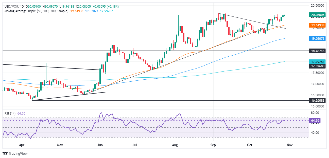 USD/MXN technical outlook: Mexican Peso plunges as USD/MXN clears 20.00