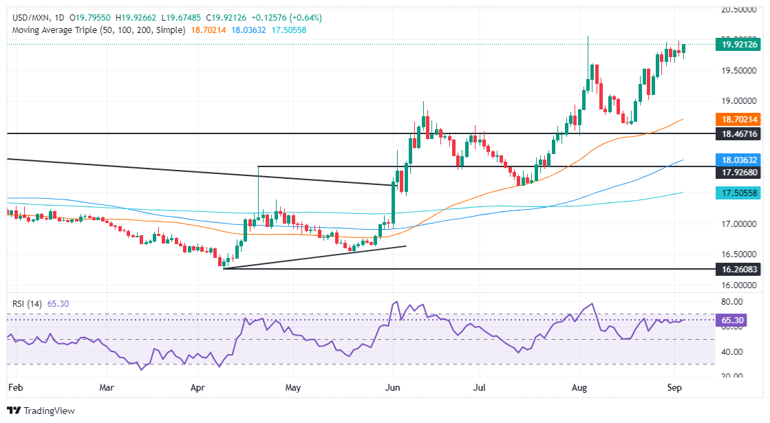 Technical outlook: Mexican Peso weakens as USD/MXN rallies above 19.85