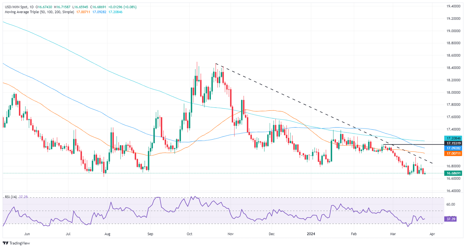 Technical analysis: Mexican Peso is subdued as USD/MXN oscillates around 16.60/70