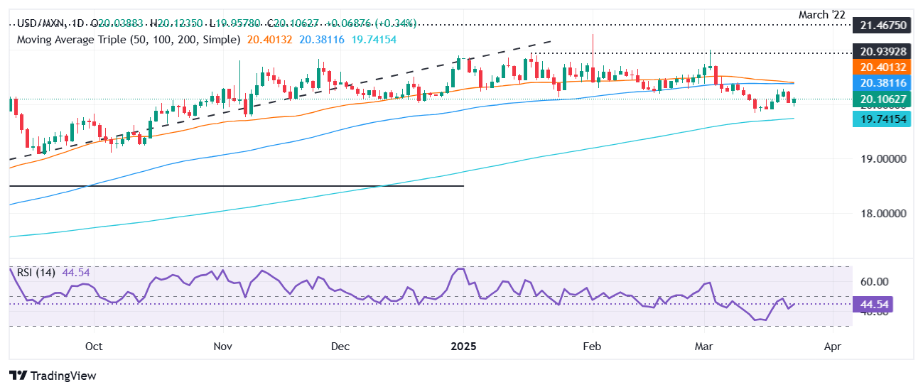 USD/MXN technical outlook: Mexican Peso loses traction as USD/MXN rises past 20.10