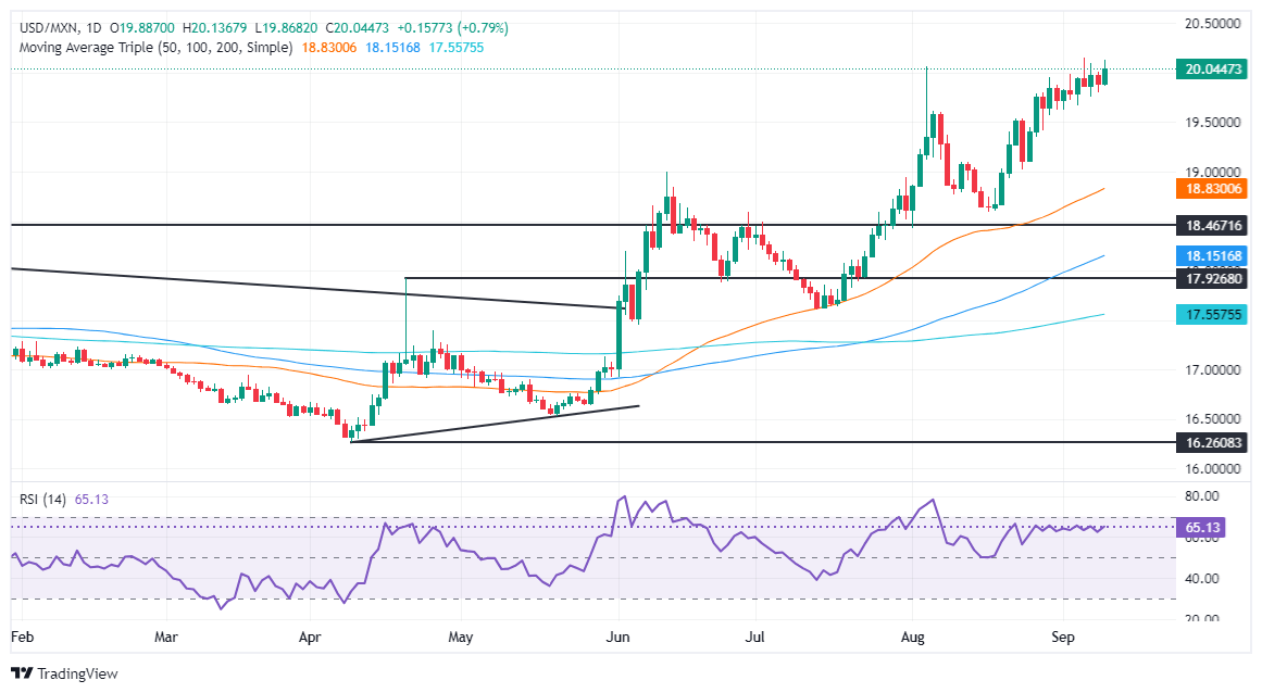 USD/MXN technical outlook: Mexican Peso tumbles as USD/MXN rises above 20.00