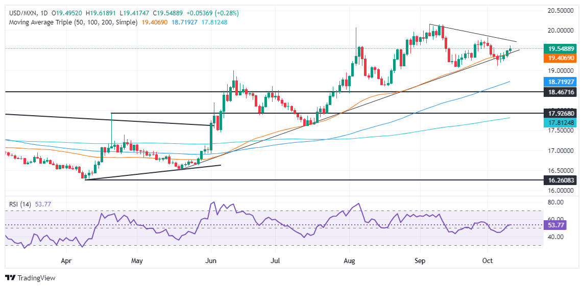 USD/MXN technical outlook: Mexican Peso extends losses as USD/MXN jumps above 19.50