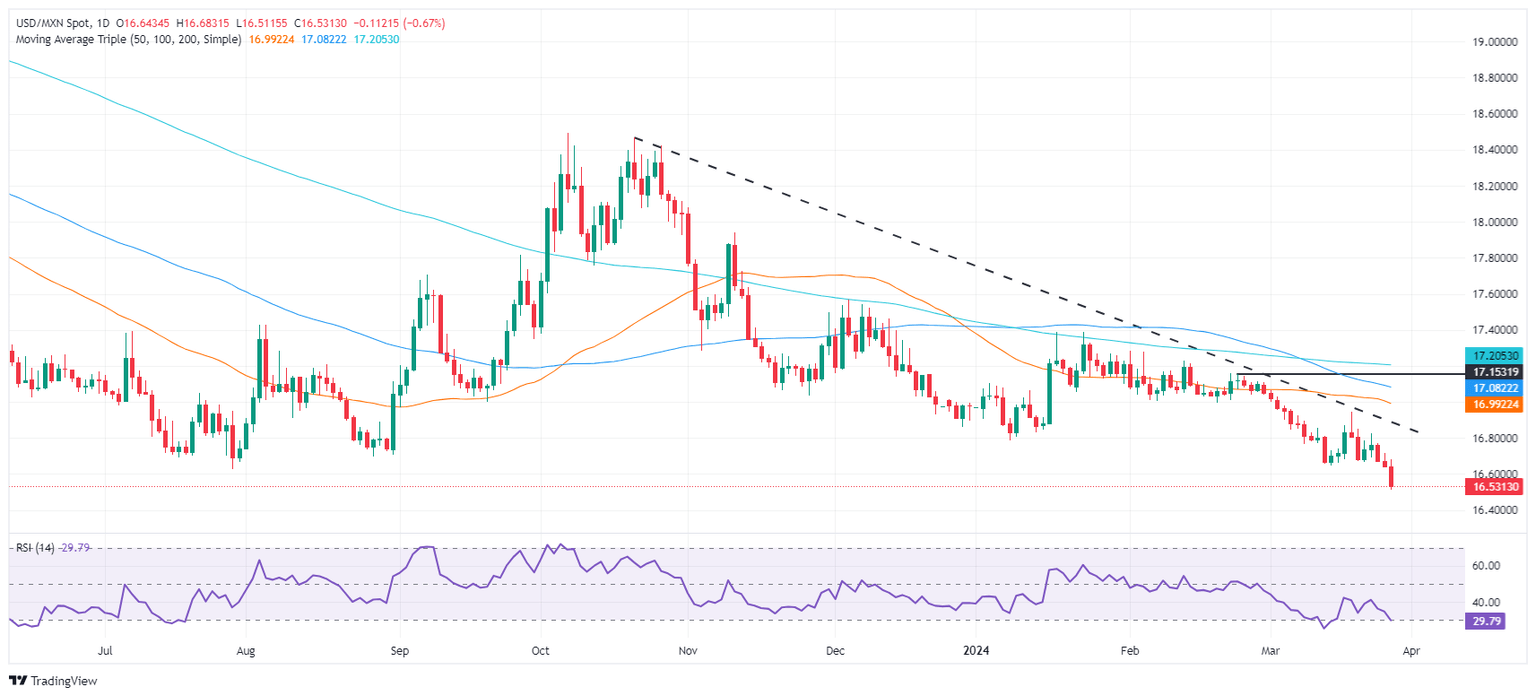 Technical analysis: Mexican Peso rally gathers steam as USD/MXN pushes below 16.60