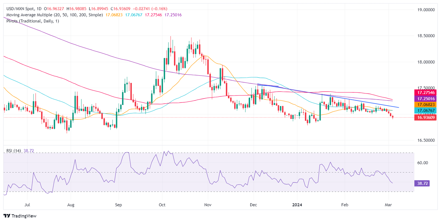 Technical analysis: Mexican Peso rallies as USD/MXN tumbles below 17.00