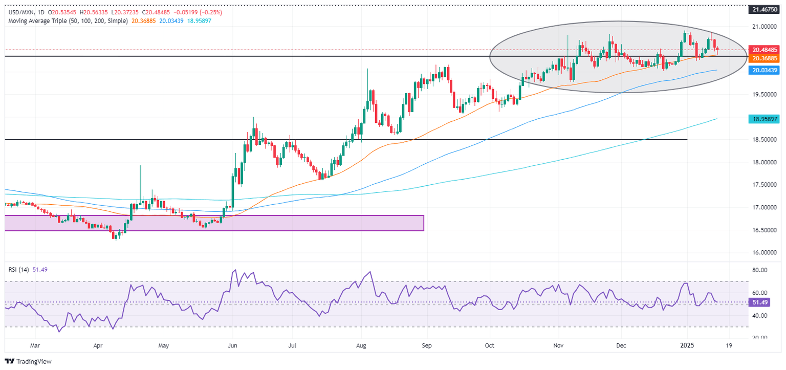 USD/MXN technical outlook: Mexican Peso recovers as USD/MXN falls below 20.50
