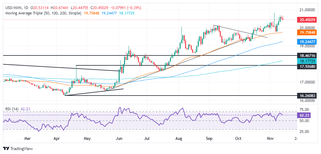 USD/MXN technical outlook: Mexican Peso counterattacks as USD/MXN hovers around 20.50