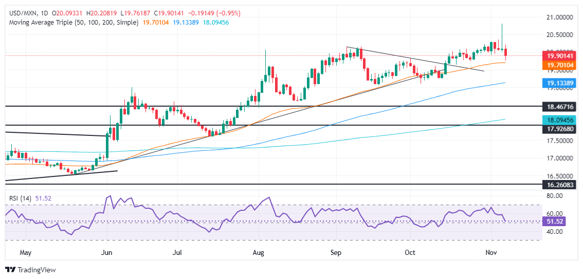 USD/MXN technical outlook: Mexican Peso’s offensive continues as USD/MXN drops under 20.00