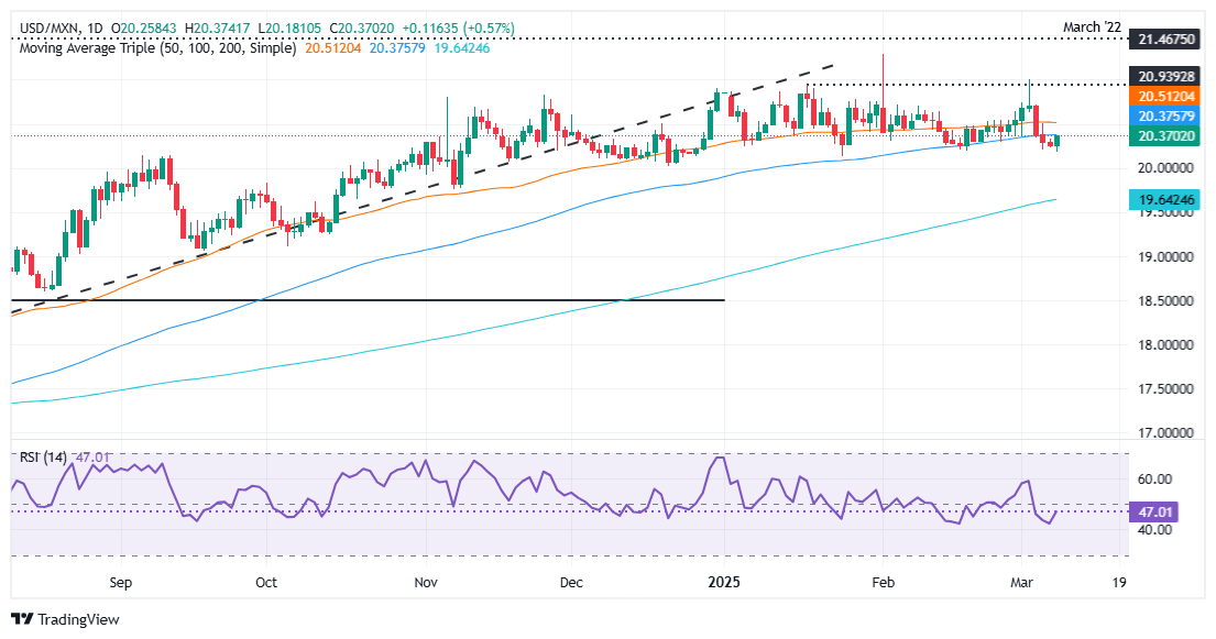 USD/MXN technical outlook: Mexican Peso weakens as USD/MXN climbs past 20.30