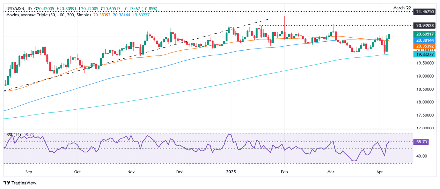 USD/MXN technical outlook: Mexican Peso treads water as USD/MXN climbs above 20.50