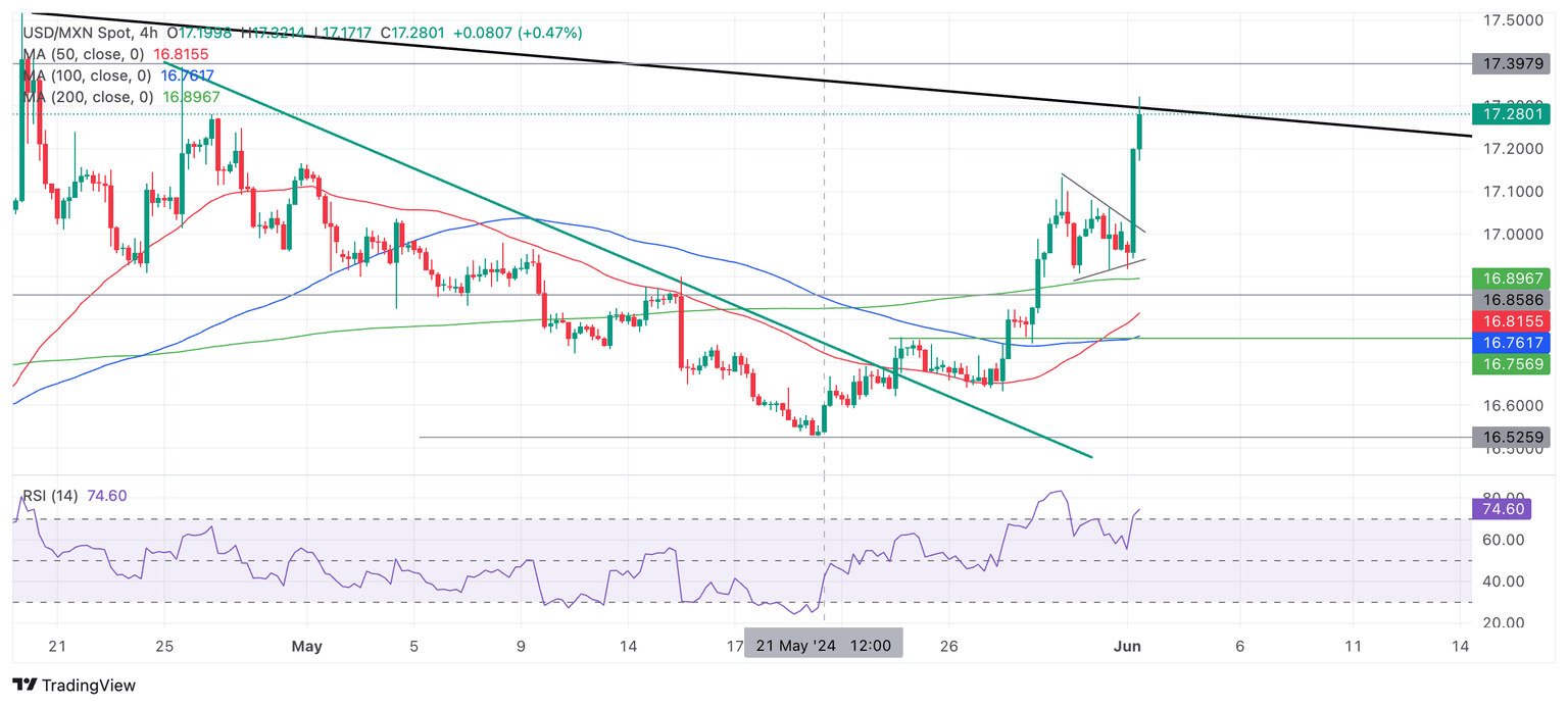 Technical Analysis: USD/MXN breaks higher, extending uptrend