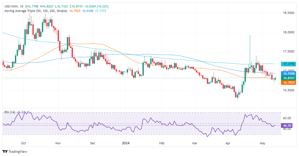 Technical analysis: Mexican Peso falls as USD/MXN rises above 16.80