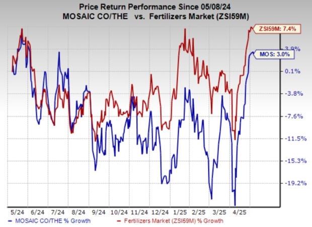 Shares of Mosaic have gained 3% in the past year compared with the Zacks Fertilizers industry’s 7.4% rise.