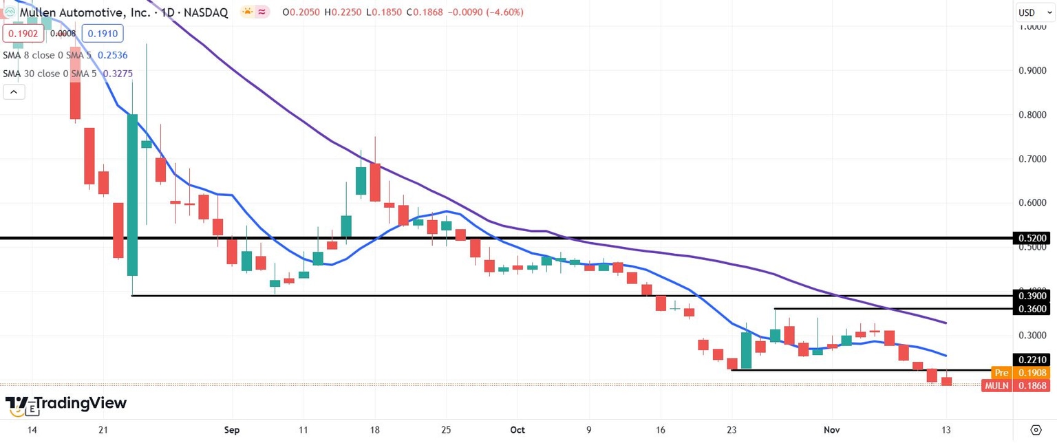 With MULN stock breaking below support at $0.2210 last Friday and $0.18 on Tuesday, there seems to be no end to the madness for shareholders. In the two years since I began covering Mullen, the stock has typically only gone in one direction – down.