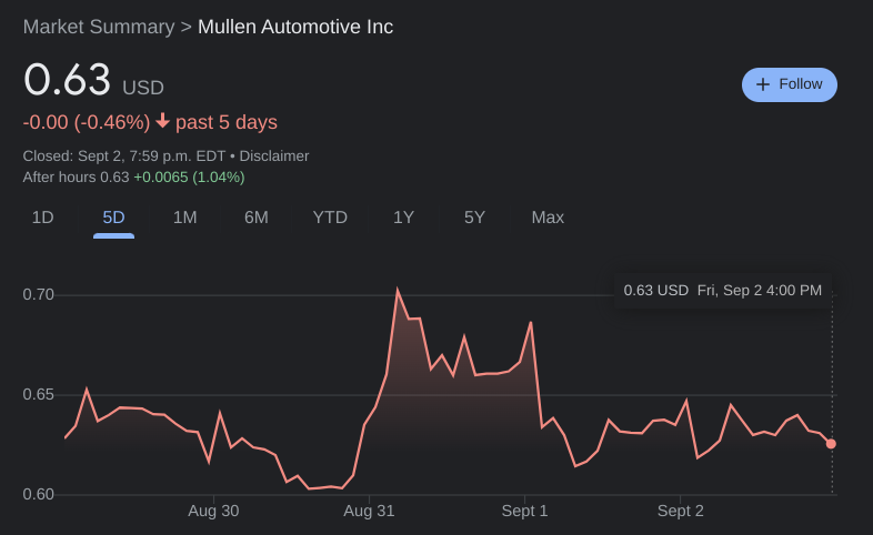 - NASDAQ: MULN finished Thursday in the red at $0.61 per share.