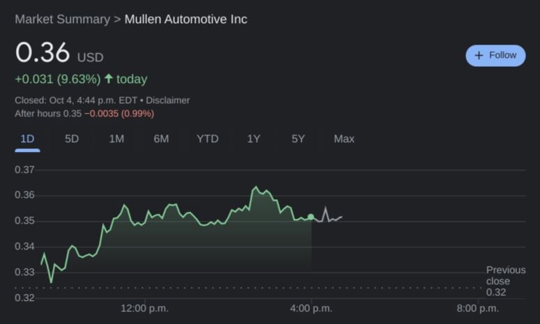 Mullen Automotive stock price
