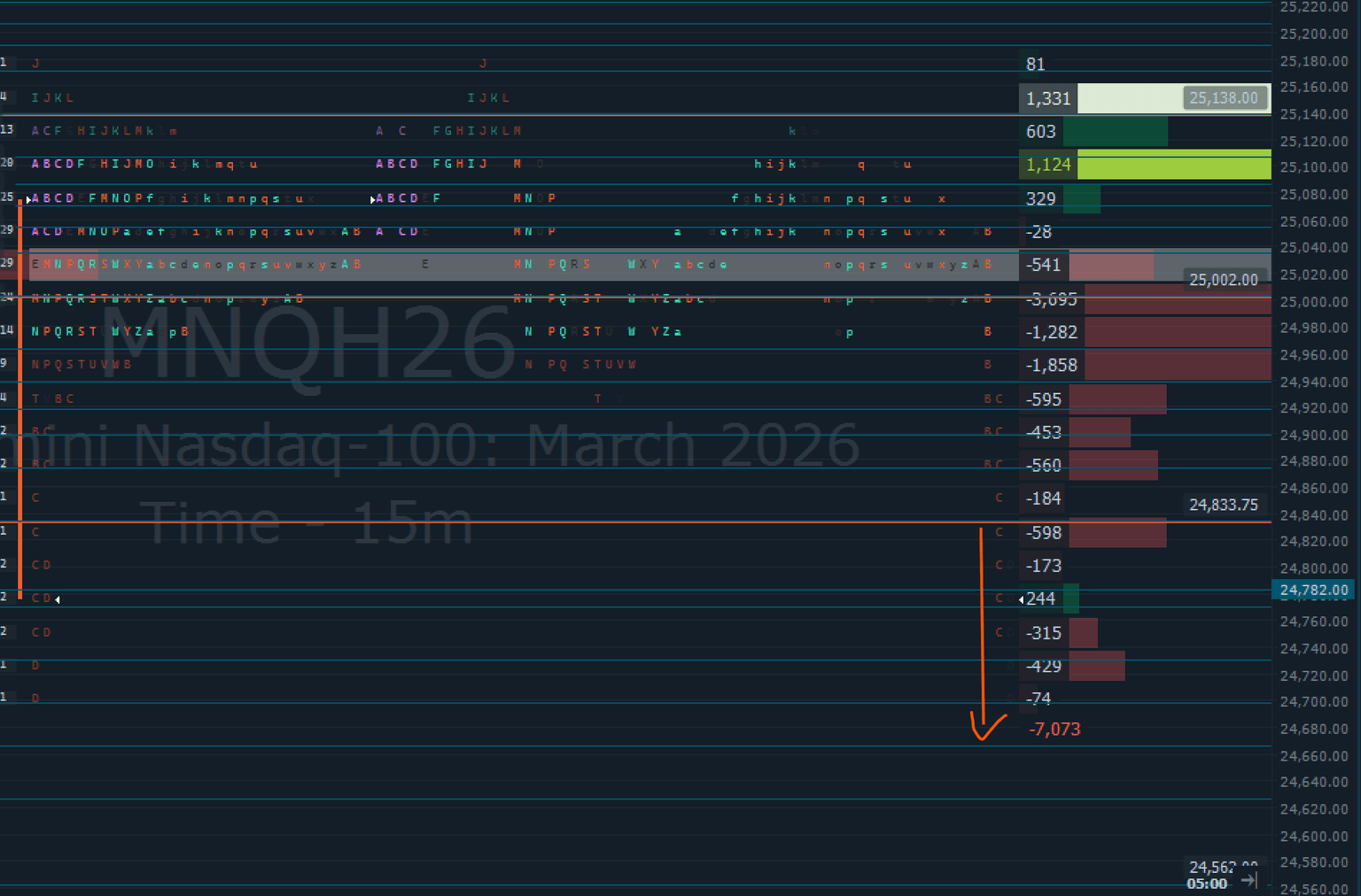 If the 24,833–25,002 band holds, the first objective is not a “trend call,” but a repair sequence: price spending time back above the shelf and pulling value upward toward the nearest volume references.