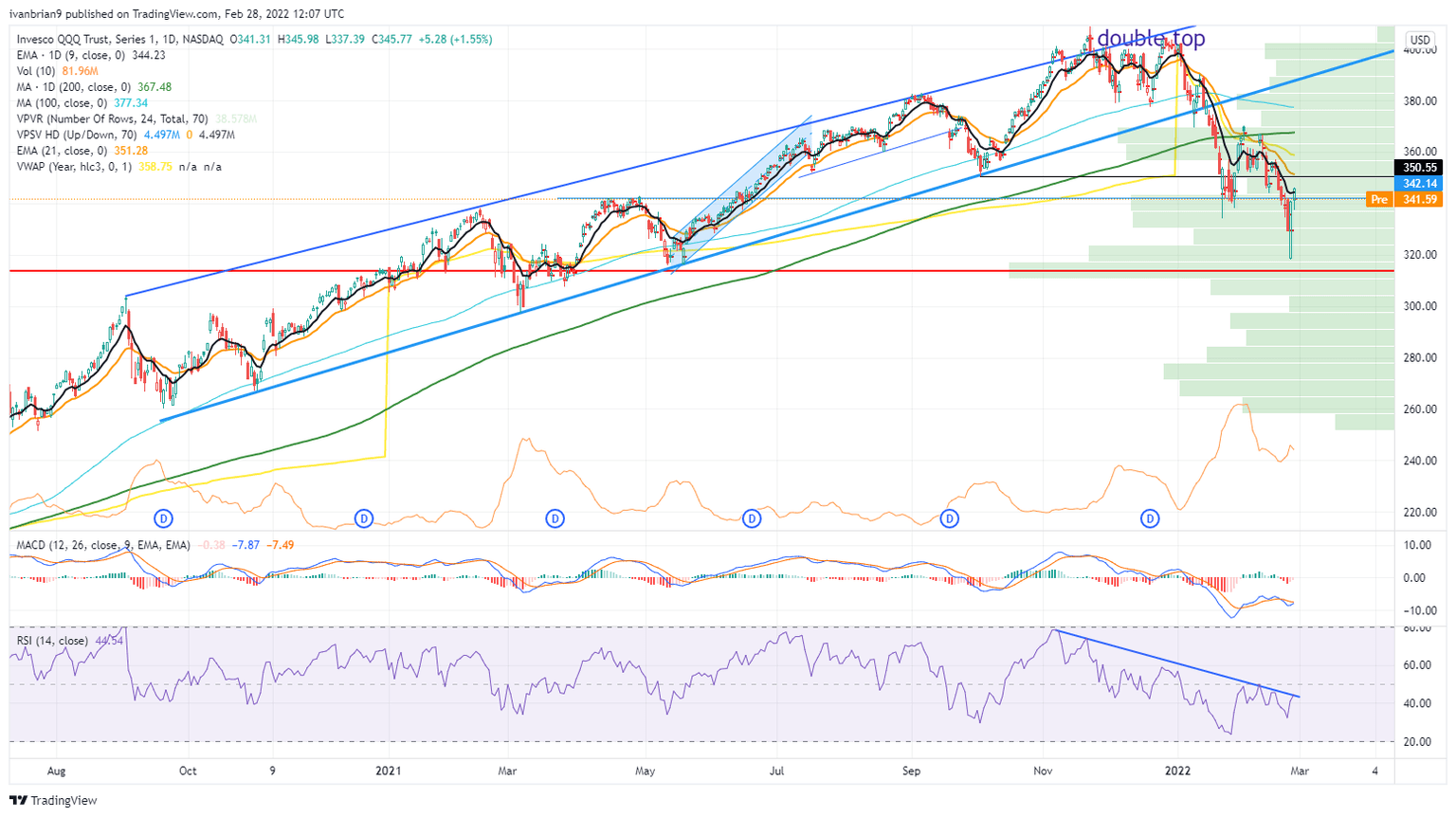 NASDAQ 100 (QQQ) Stock News and Forecast: Worries over Ukraine-Russia war dim index prospects