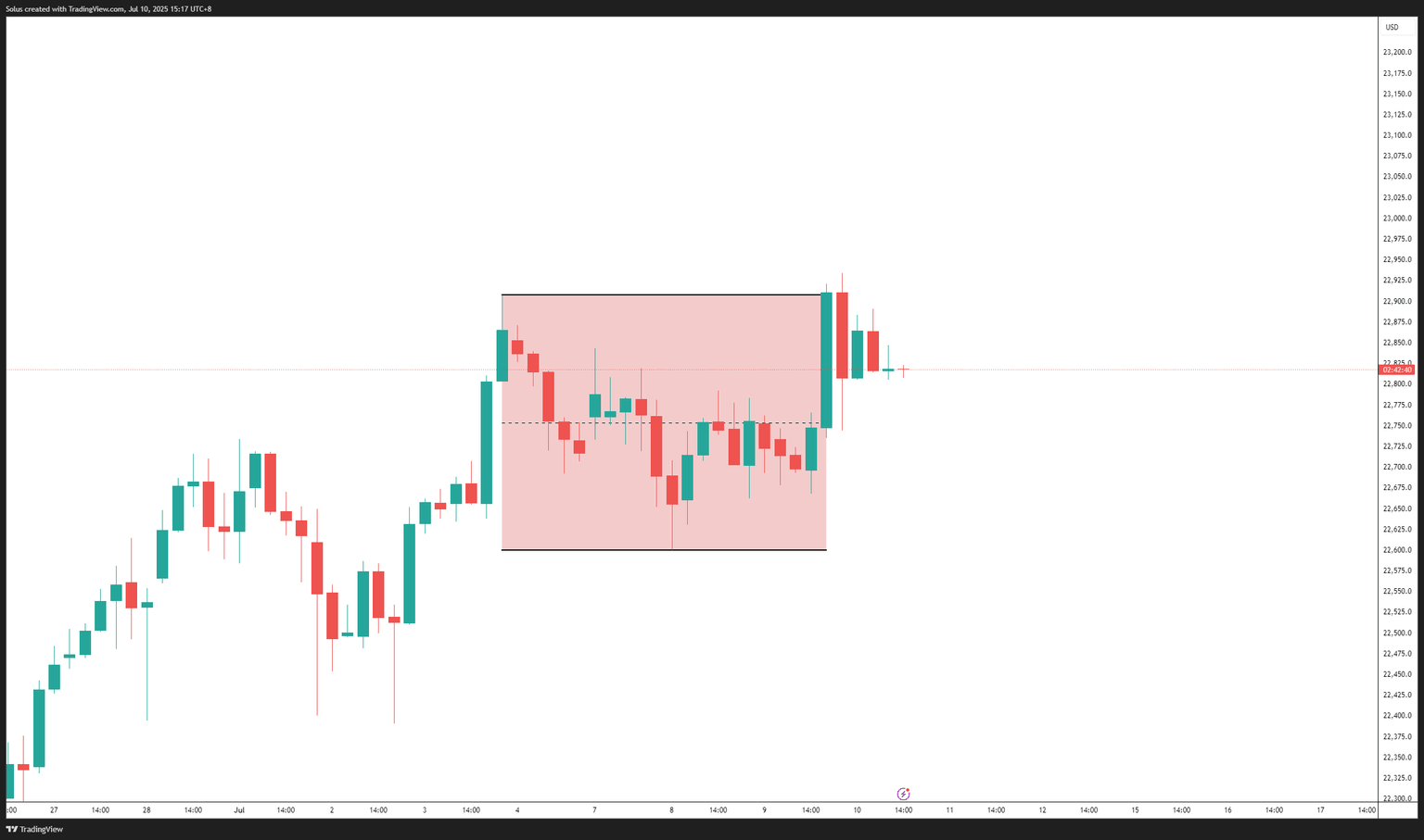 After a surged above the 50% of the range or the equilibrium, Nasdaq has reached new record highs at 22,930 level, showing signs of sustained strength over the past weeks.