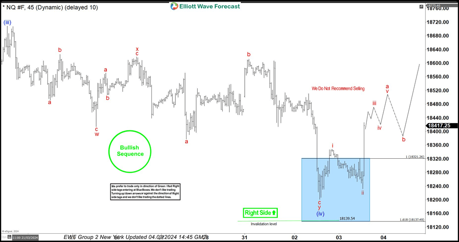 Hello fellow traders. As our members know , NASDAQ has recently given us plenty of positive buying setups. In this article we’re going to present Elliott Wave charts of NQ_F published in the members area of the website. NASDAQ made a clear 3 waves pull back that has unfolded as Elliott Wave Double Three pattern. It made clear 3 waves down from the February 23rd peak and completed correction right at the Equal Legs zone ( Blue Box Area) . In further text we’re going to explain the Elliott Wave pattern and trading setup.