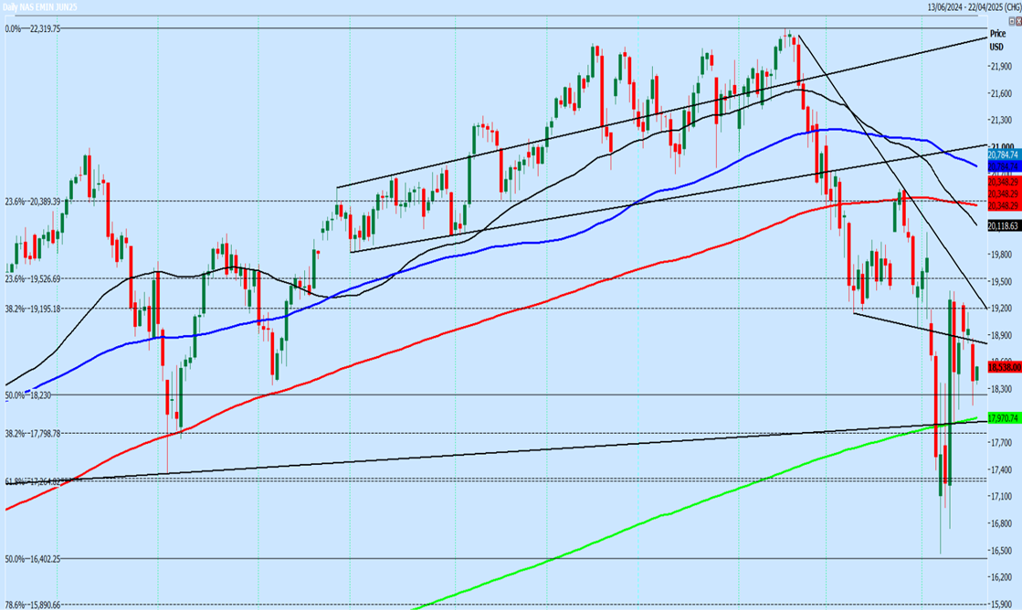 Nasdaq June reached the 19,100/200 target with a high for the day then collapsed yesterday to 18,116