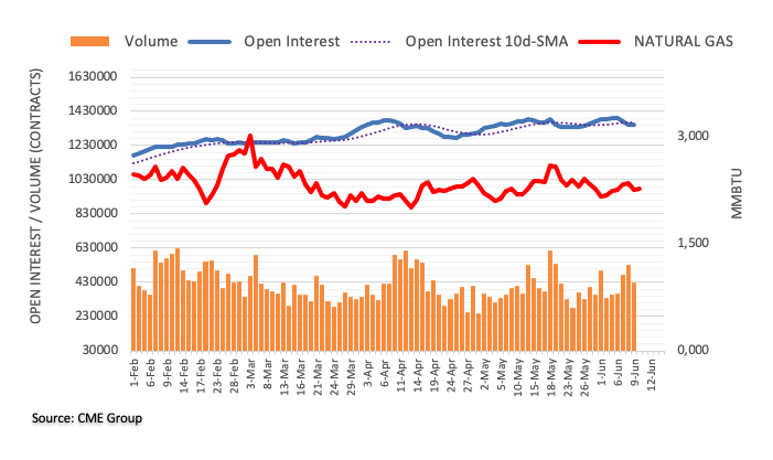 CME Group’s flash data for natural gas futures markets noted traders reduced their open interest positions by just 830 contracts on Friday, adding to the previous daily drop. In the same line, volume reversed four consecutive daily builds and went down by around 107.3K contracts.