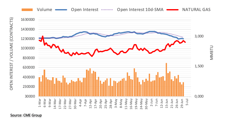 Considering advanced figures from CME Group for natural gas futures markets, open interest shrank by around 5.1K contracts after two consecutive daily builds on Friday. Just the opposite, volume increased by around 44.4K contracts following two daily drops in a row.