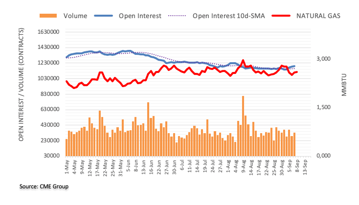 CME Group’s flash data for natural gas futures markets noted traders increased their open interest positions for the third day in a row on Thursday, now by around 4.7K contracts. In the same direction, volume, increased by nearly 45K contracts amids the persevering choppy activity.