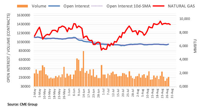 Prices of natural gas started the week with decent gains supported by rising open interest and volume, which is indicative that the uptrend remains well in place for the time being. In the meantime, prices of the commodity appear so far well supported around the $9.00 mark per MMBtu.