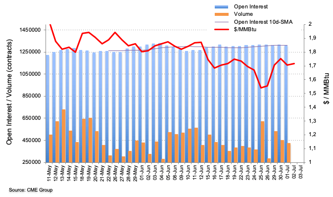 CME Group’s flash readings for Natural Gas futures markets noted open interest and volume went down by around 3.5K contracts and nearly 28.5K contracts, respectively, on Wednesday.