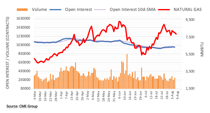 Friday’s downtick in prices of natural gas edged lower at the end of last week and broke below the key $8.00 mark amidst declining open interest. Against that, the continuation of the downtrend appears unlikely for the time being, while the commodity faces decent support in the $7.50 region per MMBtu.