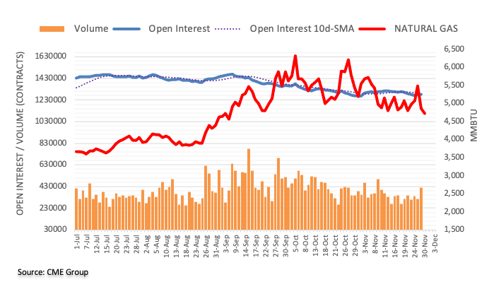 Monday’s moderate pullback in prices of natural gas was amidst shrinking open interest, which warns against the likelihood of deeper drops in the very near term at least. In the meantime, the $4.70 mark per MMBtu still emerges as quite a decent contention area.