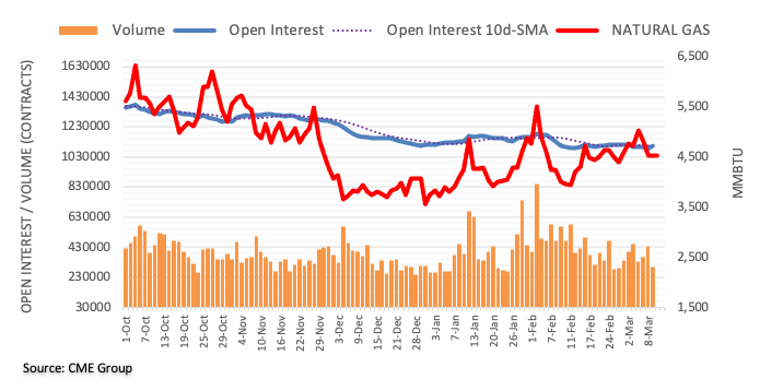 Considering advanced prints from CME Group for natural gas futures markets, traders added around 16.3K contracts to their open interest positions following two daily drops in a row on Wednesday. On the other hand, volume dropped by around 143.5K contracts after two straight daily builds.