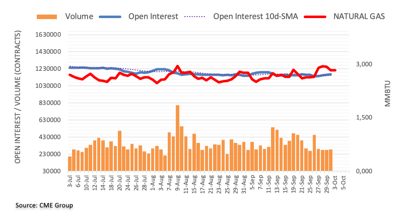 Open interest in in natural gas futures markets increased for the third consecutive session on Monday, this time by around 5.5K contracts according to preliminary readings from CME Group. In the same direction, volume went up by nearly 7K contracts after three daily drops in a row.
