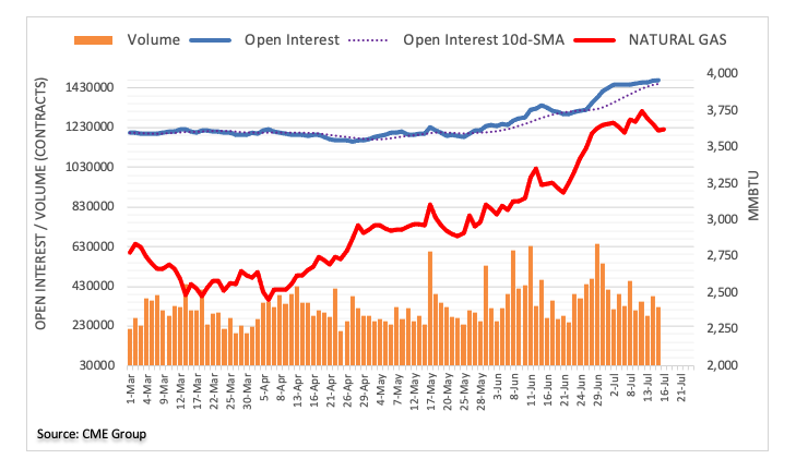 Thursday’s drop in prices of natural gas was amidst diminishing open interest and volume, hinting at the idea that extra decline appears to be losing momentum for the time being. Against this, the $3.50 level per MMBtu emerges as the next area of contention.