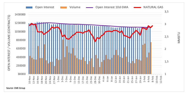 Advanced figures for natural gas futures markets from CME Group noted investors trimmed their open interest positions by just 206 contracts on Friday, partially reversing the previous build. Volume, instead, increased for the second session in a row, this time by around 248.5K contracts.