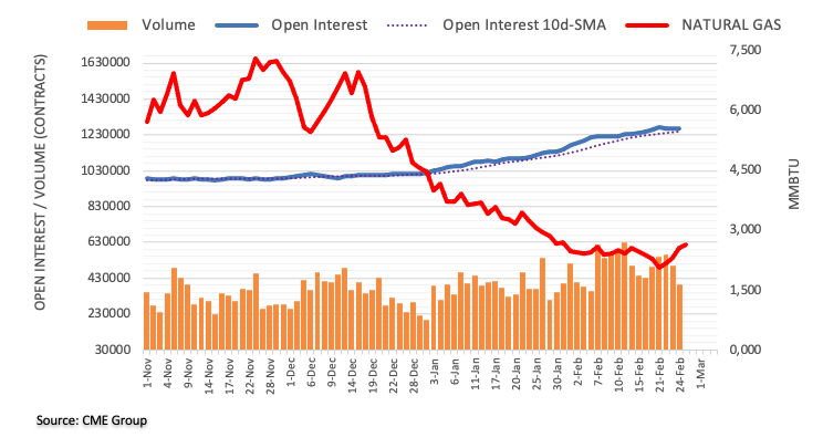 Considering advanced prints from CME Group, open interest in natural gas futures markets shrank by around 1.8K contracts on Friday, keeping the choppiness well in place for the time being. In the same line, volume dropped for the second consecutive session, now by around 104.7K contracts.