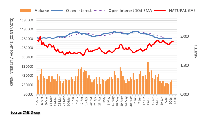 CME Group’s flash data for natural gas futures markets noted traders scaled back their open interest positions for the second session in a row on Tuesday, this time by around 3.7K contracts. Volume, instead, went up for the second consecutive day, now by around 34.2K contracts.