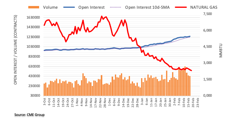 CME Group’s flash data for natural gas futures markets noted traders added around 4.5K contracts to their open interest positions on Thursday, reaching the second consecutive daily build. Volume, on the other hand, dropped for the third session in a row, now by around 8.1K contracts.