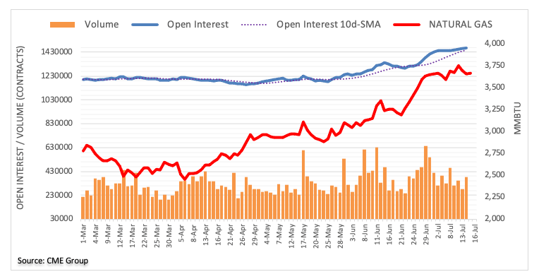 Open interest in natural gas futures markets increased for the fourth straight session on Wednesday, now by more than 7K contracts according to preliminary prints from CME Group. In the same line, volume extended the choppy performance and rose by around 97.3K contracts.