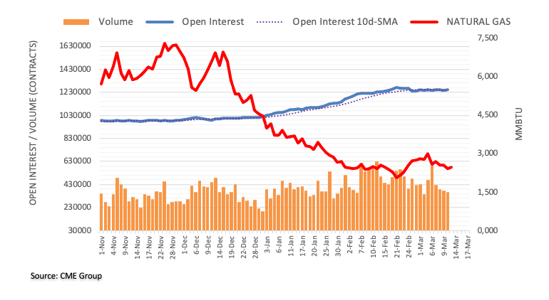 Considering advanced prints from CME Group for natural gas futures markets, open interest increased by around 2.8K contracts after two consecutive daily pullbacks on Friday. On the other hand, volume shrank for the fourth straight session, this time by around 11.2K contracts.