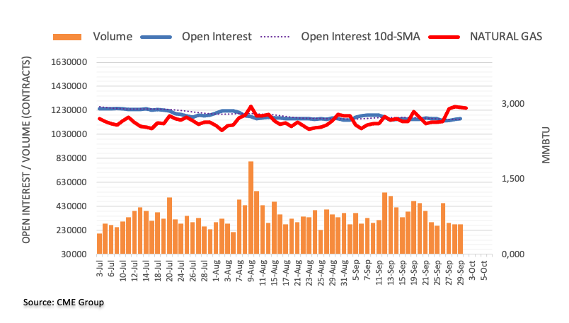 Considering advanced prints from CME Group for natural gas futures markets, open interest rose for the second session in a row on Friday, now by nearly 8K contracts. Volume, instead, dropped for the third straight session, this time by more than 2K contracts.
