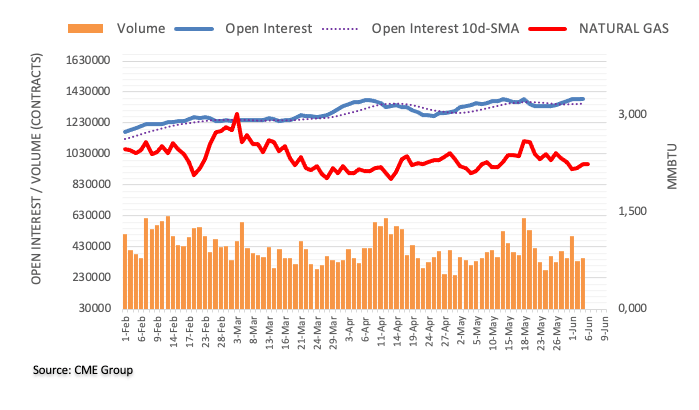 Considering advanced prints from CME Group for natural gas futures markets, open interest resumed the uptrend and went up by around 5.1K contracts on Monday. Volume, in the meantime, remained erratic and rose by around 20.5K contracts following the previous pullback.