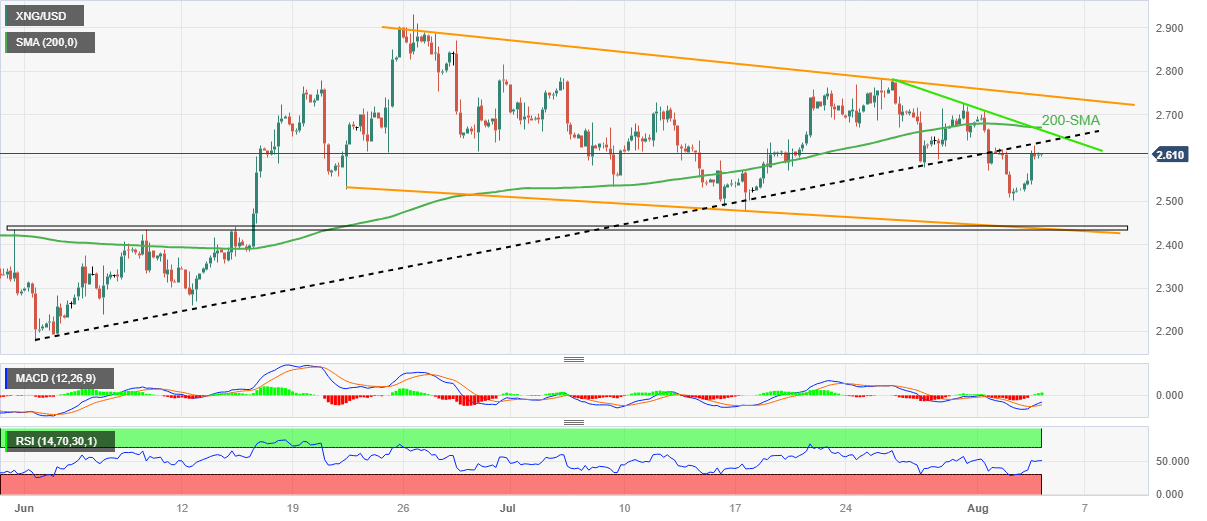 Natural Gas Price Analysis: XNG/USD recaptures $2.60 within six-week-old bearish channel