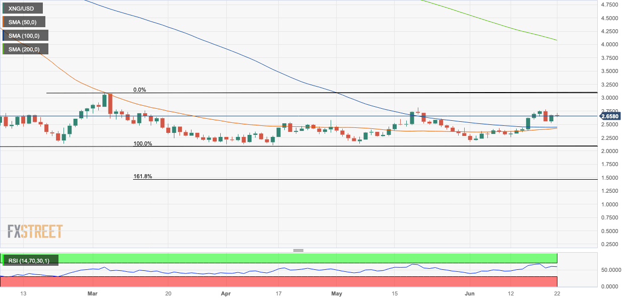 XNG/USD is trading at $2.692 MMBtu, at the time of writing, entering the US session on Thursday.