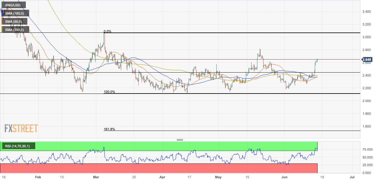 XNG/USD is trading higher on Friday, extending a strong start and exchanging hands at $2.707 MMBtu, at the time of writing.