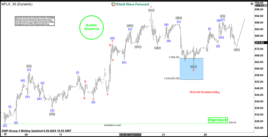 Hello fellow traders. In this technical article we’re going to take a look at the Elliott Wave charts charts of Netflix (NFLX) Stock published in members area of the website. Our members are aware of the numerous positive trading setups we’ve had among stocks and indices recently. One of them is NFLX, which made a pullback that concluded right at the Equal Legs zone (Blue Box Area). In the following text, we’ll delve into the Elliott Wave pattern and trading setup.