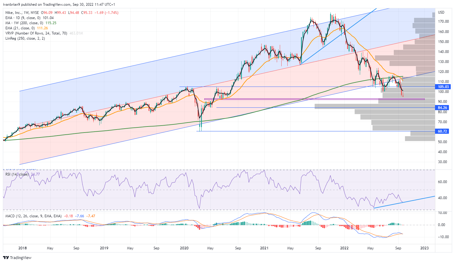 Adding to the bearish outlook is the fact that Nike stock has cracked the 200-week moving average. This is a feat rarely achieved. The next key support is $84.26. This needs to be watched in the regular session for a reaction from the Relative Strength Index (RSI). Currently, we have a bullish divergence, which could indicate a possible short-term bottom.
