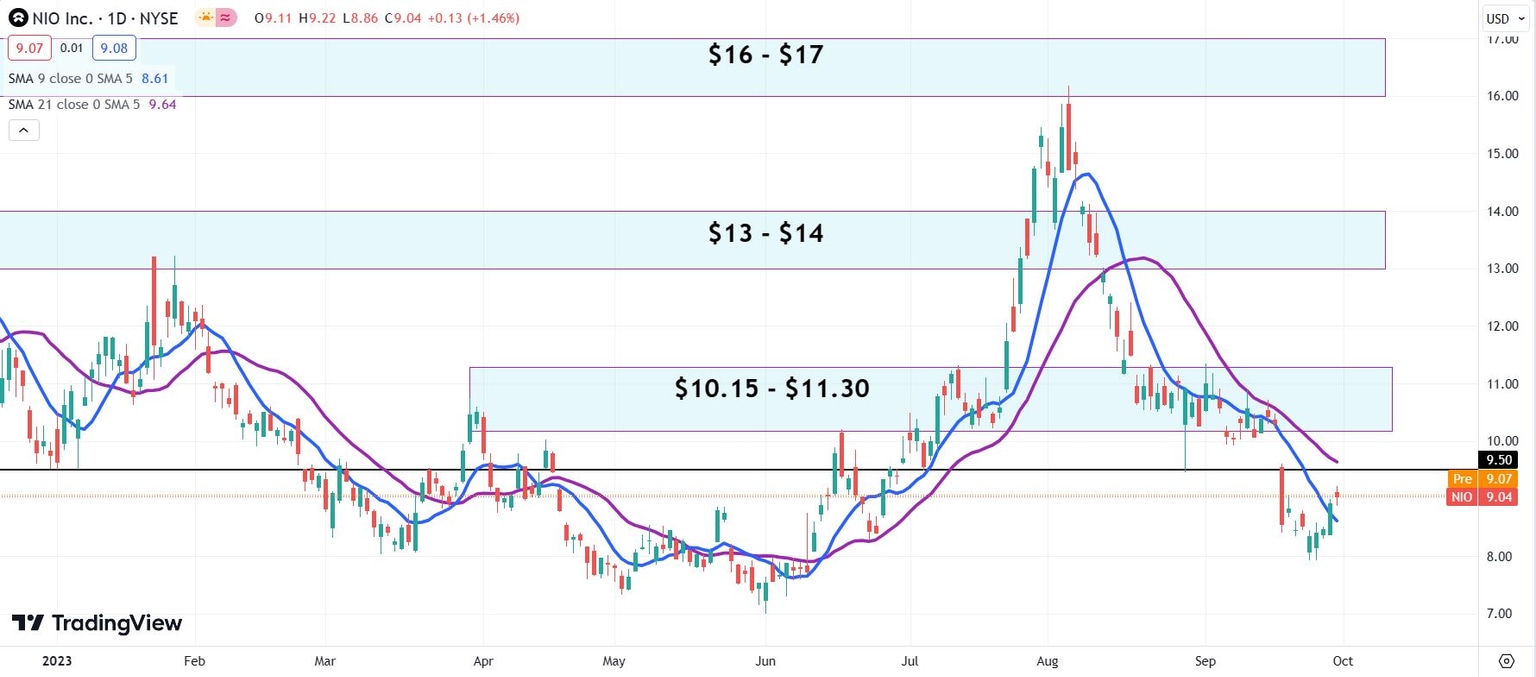 Nio stock still needs to clear the $9.50 level to make the market take this miniature rally seriously. After seeming to bottom at around $8 a share early last week, NIO stock was able to rally up past $9. The $9.50 level has worked as support on August 29, back in April and at the very start of 2023. It also showed the quality of resistance in February and March, so we might expect it to do so again on a first test.